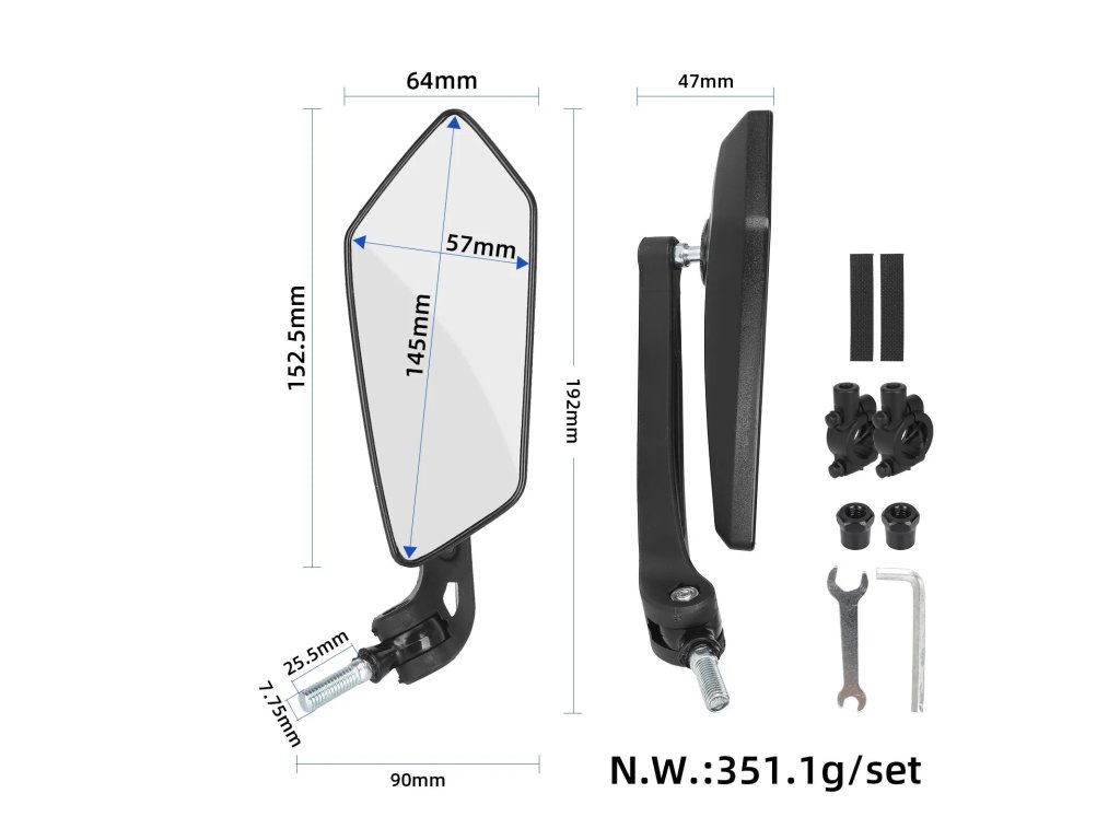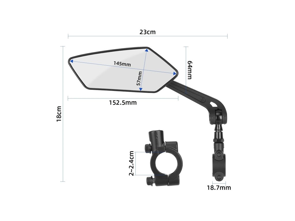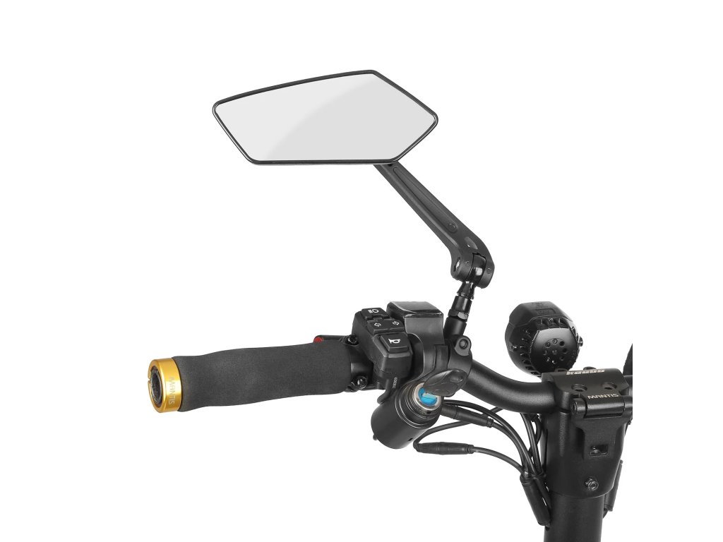 Zrcadlo umožňuje plynulé nastavení úhlu podle potřeb jezdce a poskytuje jasný obraz prostoru za kolem.